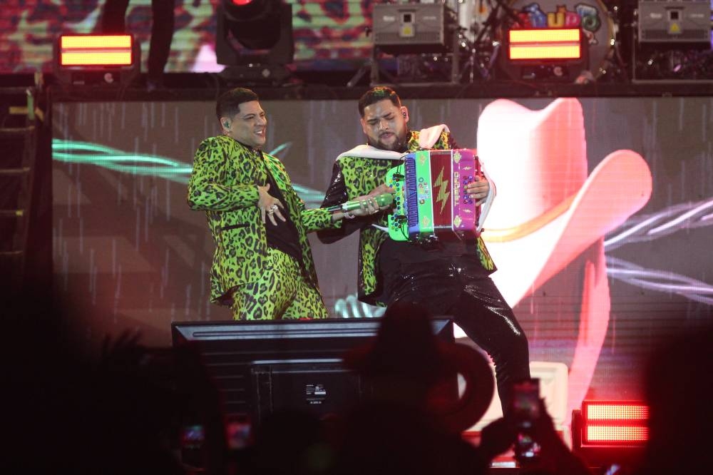 Poco antes de las 9:00 de la noche, la agrupación juvenil liderada por Eduin Caz pudo subir a un escenario con nuevos equipos y ofrecer su recital ante los salvadoreños. Acompañado de sus cantantes Abraham Hernández y Johnny Caz, así como del resto de músicos, Eduin presentó su gira "Hay que conectarla Tour 2023", con fabulosos éxitos como "Qué onda perdida", "Ya supérame" o "En tu perra vida".