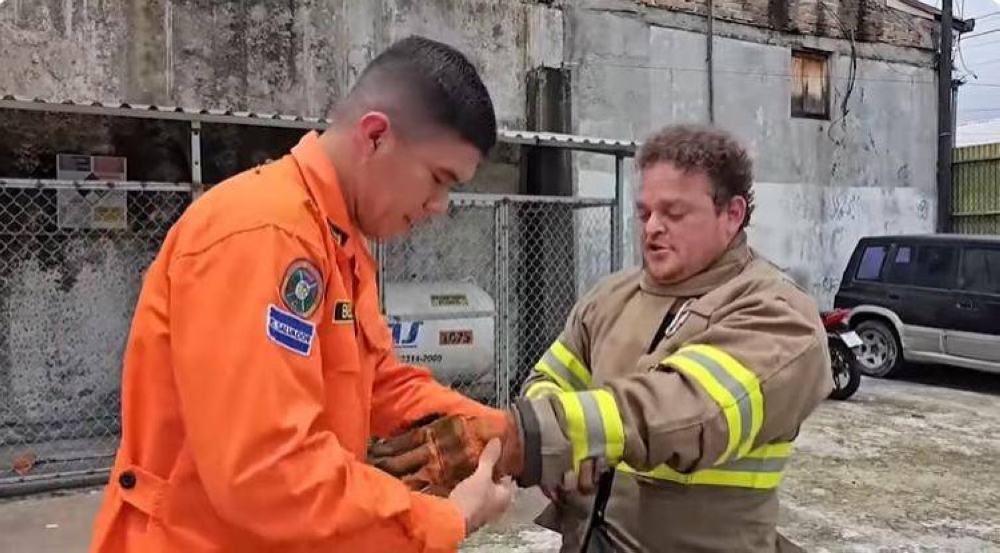 Fue así como llamaron al servicio 911 y más tarde el Cuerpo de Bomberos de El Salvador se hizo presente para tratar de retirar las abejas, preparados con trajes adecuados e incluso proporcionaron uno al youtuber para que apoyara la colocación de los insectos en una cubeta. Al activar la máquina, calentó y poco a poco todas las abejas se retiraron.