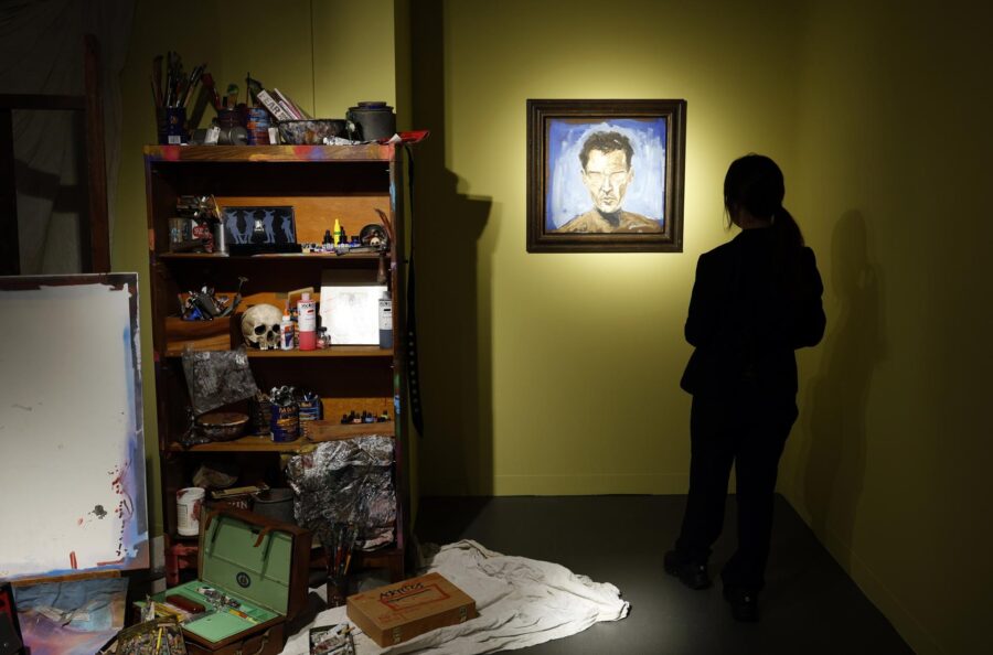 Latas vacías, pinceles, calaveras, una lámpara en un zapato de madera o lienzos pintados son algunos de los objetos que decoran los diferentes espacios de la muestra, que quieren recrear el espacio personal del artista con muebles de su propia casa.