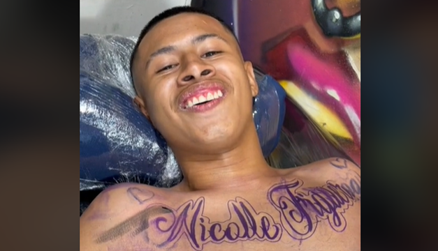 "Baby meshi" publicó ayer sábado un video en el que aparece con el nombre de "Nicolle Figueroa" aparentemente en proceso de tatuaje sobre la parte superior de su pecho.