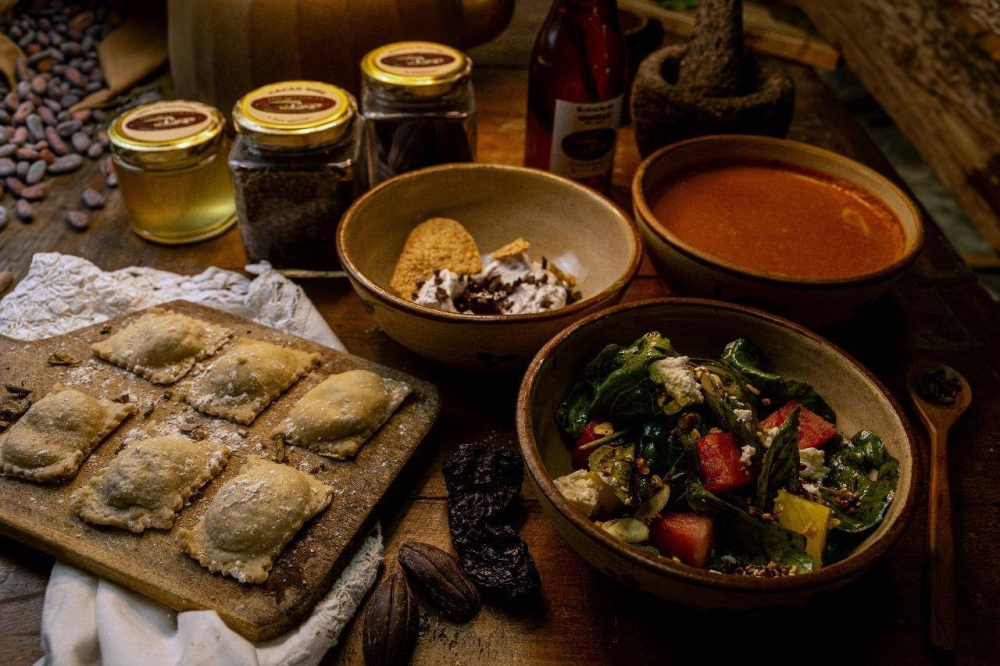 Para una experiencia completamente inmersiva, el chef Diego Beltrán ha diseñado el menú para degustar en esta sesión, con “El cacao en cuatro palabras”, con cuatro platos a base del cacao que se exporta hacia Europa, proveniente de dicha finca.