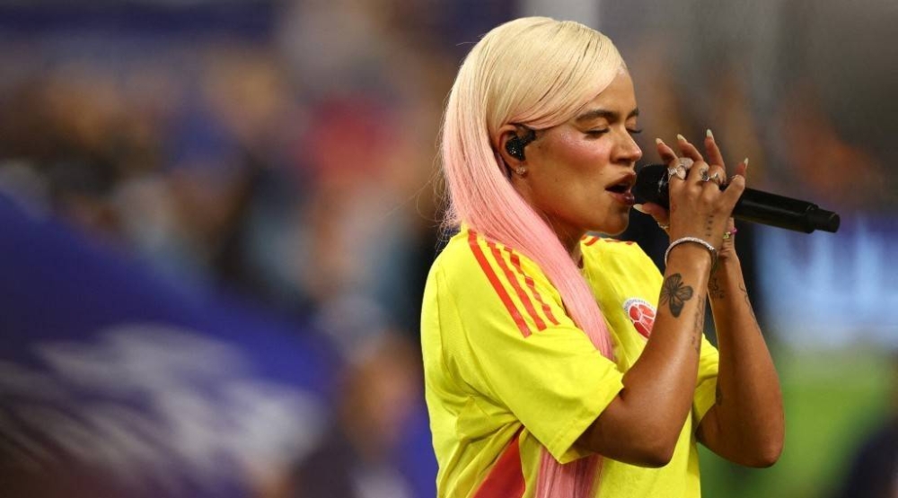 La querida cantante Karol G apareció este domingo en el Hard Rock Stadium de Miami para cantar el Himno Nacional de su país, durante la final de la Copa América 2024.