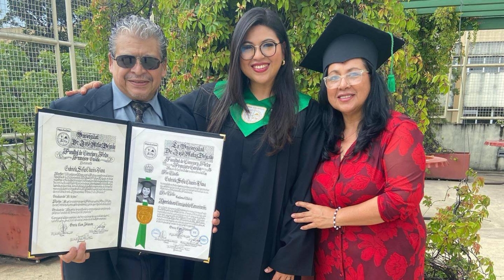 La cantante salvadoreña Gabby Chacón, recordada como cuarto lugar del concurso "El Número Uno" (TCS, 2023), le dio una gran alegría a sus padres este jueves, al graduarse como Licenciada en Ciencias de la Comunicación, con especialidad en Publicidad y Marketing de la Universidad José Matías Delgado.