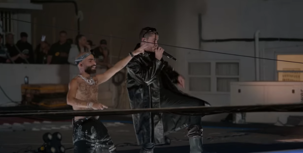 En la grabación también aparecen fragmentos de otros show que ha brindado Bad Bunny junto a Arcángel, incluyendo una escena del videoclip "Tú no vive así" de hace seis años, cuando el boricua apenas iniciaba en la industria musical.