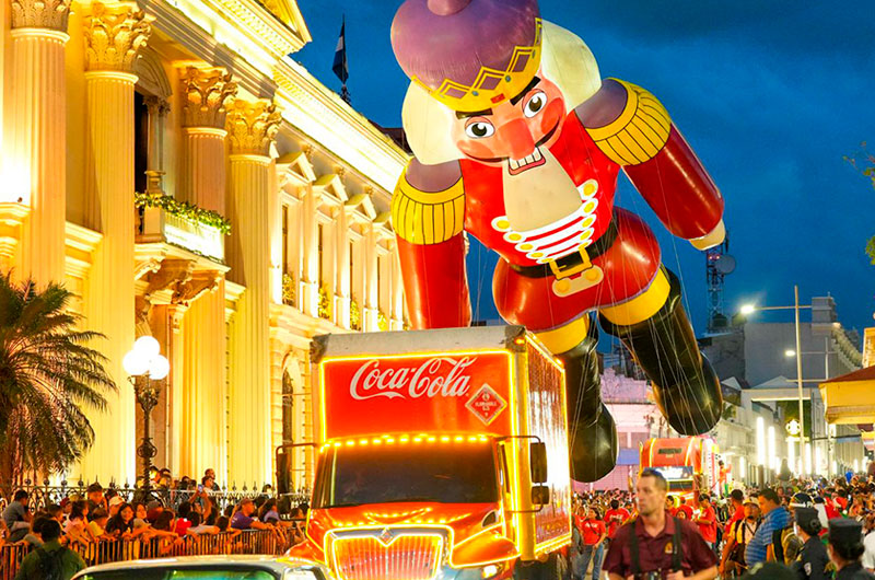 Las familias salvadoreñas presenciaron la caravana Coca Cola, que por segundo año consecutivo llevó al Centro Histórico el desfile de gloos gigantes, alusivos a la Navidad.
