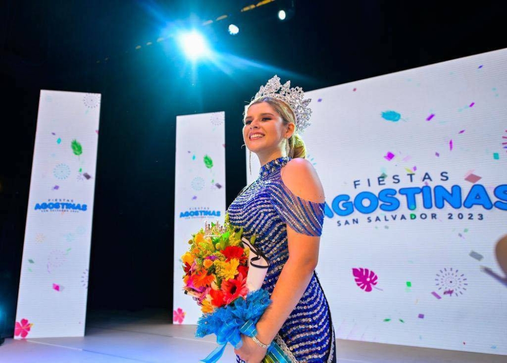 La rubia Amanda Carballo se convirtió en la nueva reina de las fiestas agostinas 2023, coronada por el alcalde capitalino Mario Durán en el Teatro Nacional de San Salvador. La joven participó junto a otras 25 chicas en este evento lleno de glamour, baile y fantasía.
