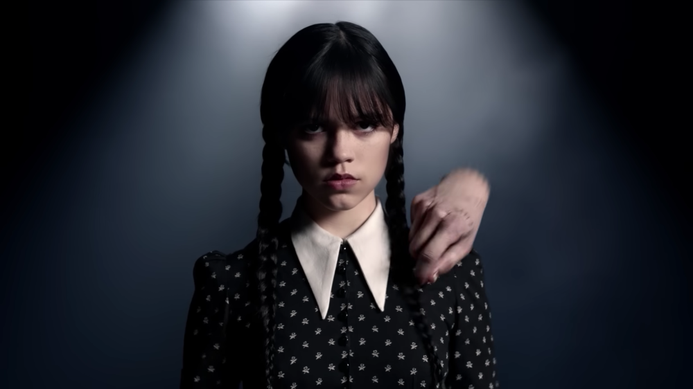 El teaser muestra a Jenna Ortega perfectamente caracterizada, acompañada por la mano Cosa.