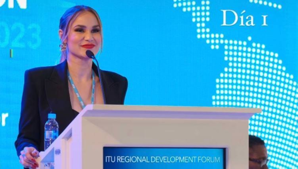 La rubia ha estado como anfitriona del Foro de Desarrollo Regional ITURDF, American Region San Salvador 2023 que se extendió durante tres días con una iniciativa de la agencia de las Naciones Unidas y la Superintendencia General de Electricidad y Telecomunicaciones (SIGET).