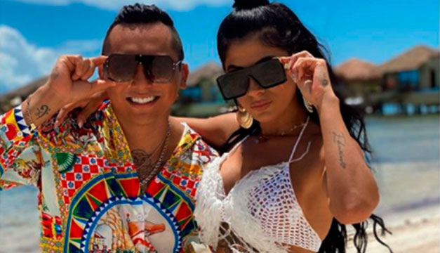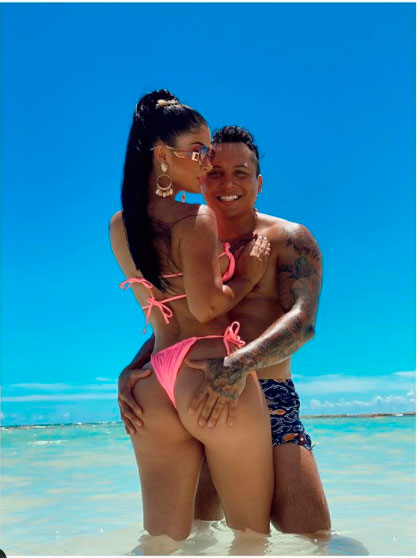 La pareja posó de forma muy cariñosa en la playa. Kimberly de espaldas, en bikini, exhibiendo sus atributos físicos y Edwin con las manos en sus glúteos.