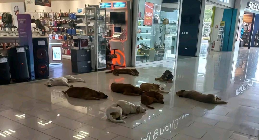 Cabe mencionar que este espacio privado no precisamente se publicita como "Pet Friendly" (abierto a las mascotas), pero la vigilancia tuvo a bien permitir el ingreso de los caninos ante las circunstancias del clima, especialmente ante la ley especial de Protección y Bienestar Animal que ya ha asegurado sanciones en todo el país.