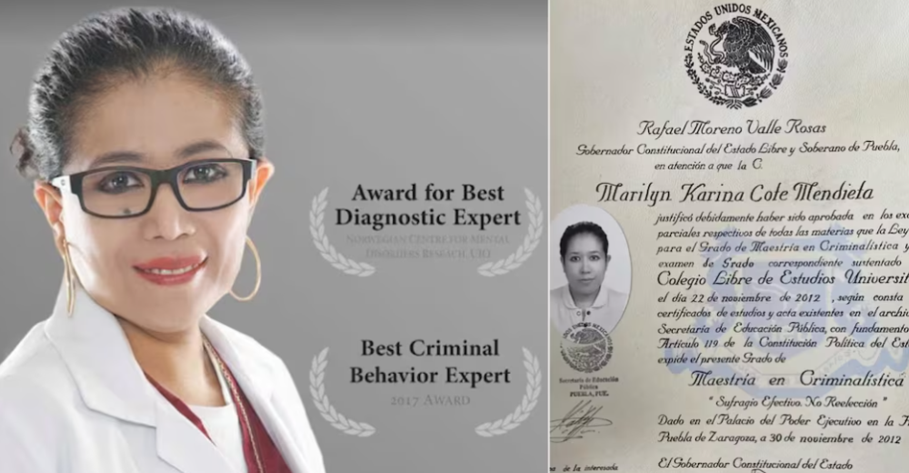 La psiquiatra charlatana, quien sí se graduó en Derecho por la Benemérita Universidad Autónoma de Puebla y obtuvo una maestría en Criminalística, no tenía ninguna formación en Medicina o Psiquiatría. Sin embargo, se presentaba como una experta en desórdenes mentales, utilizando cédulas profesionales falsas para recetar medicamentos.