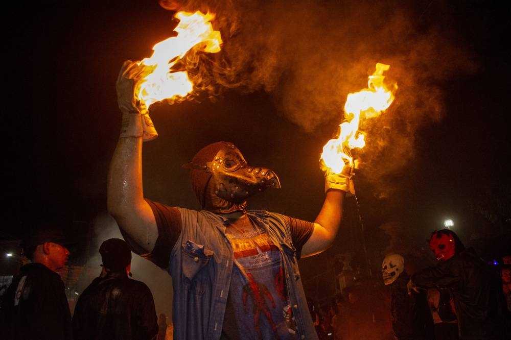 Pasadas las 8:00 de la noche, la turba de enmascarados -muchos recordando personajes de películas de terror- comenzaron la batalla librada en la calle principal de la ciudad pupusera, en presencia de miles de observadores que se asustaban ante las llamaradas que pasaban a su lado (o chocaban accidentalmente contra ellos), pero aún así decidían enfrentar la adrenalina para ser testigos directos.