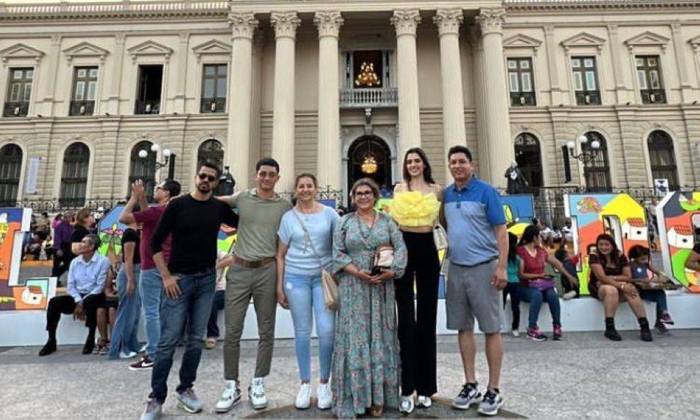 Melissa junto a su querida familia y ya sin compromisos del certamen, en la Plaza Barrios.