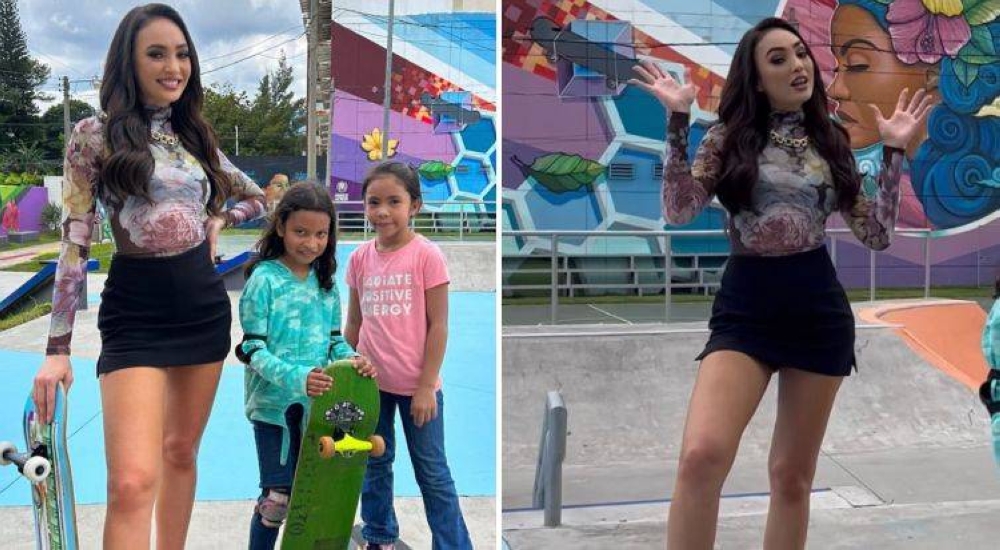 En su tercer día de visita por El Salvador, la Miss Universo 2022 R'Bonney Gabriel se fue al CUBO de la colonia Zacamil, en San Salvador, para tomar unas clases de skateboarding y demostró que no anda nada mal en su agilidad y equilibrio. La modelo conoció así a niños locales en este Centros Urbanos de Bienestar y Oportunidades, que es uno de los proyectos sociales y culturales a favor de una cultura de paz, del gobierno de Nayib Bukele.