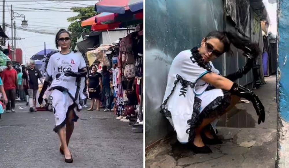 Nessa Sosa es una modelo transgénero salvadoreña que este año deslumbró con una portada y sesión de fotos en la edición 26 de la revista Blanc, pero hace unos días reapareció en el centro histórico de San Salvador -uno de sus escenarios favoritos- para modelar un vestido con mensaje, diseñado por la artista Midnight Delight, del concepto de moda Haus of Delight.
