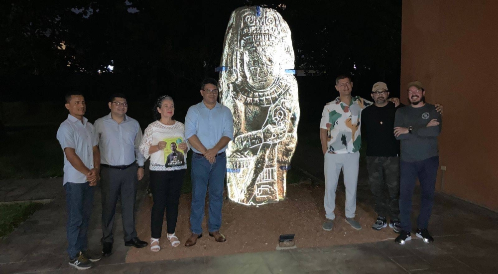 Fue así, como Hernández preparó una presentación audiovisual única e irrepetible sobre la estela de Tazumal, una pieza arqueológica en piedra, colocada en el jardín del museo.