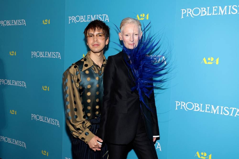 Julio Torres y la flamante británica Tilda Swinton en la premier de "Problemista" (2023). / AFP