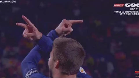 El jugador del Barcelona celebró su anotación levantando tres dedos; dos en una mano y el dedo de en medio, sustituyendo de esta forma la manera como suele festejar: levantando dos dedos de cada mano como un símbolo por su cumpleaños y el de la colombiana que es el 2 de febrero.