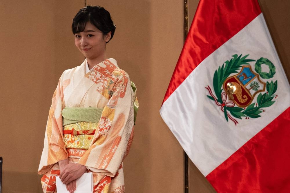 Vestida con un kimono, la princesa Kako, de 28 años, encabezó una ceremonia en un centro cultural binacional en Lima, Perú, este viernes, donde fue recibida por niños con banderas japonesas y peruanas, autoridades y dirigentes de la comunidad nikkei, que agrupa a todos los inmigrantes y descendientes de origen nipón. En el evento, recibió una pequeña escultura de un jinete en un caballo peruano de paso.