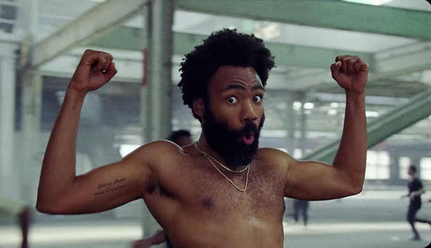 4- A sus 34 años, Donald Glover, conocido también como Childish Gambino, exhibe, bailando con el torso desnudo, todo su talento: actor, escenógrafo, realizador, productor, humorista, rapero, DJ, cantante y músico.