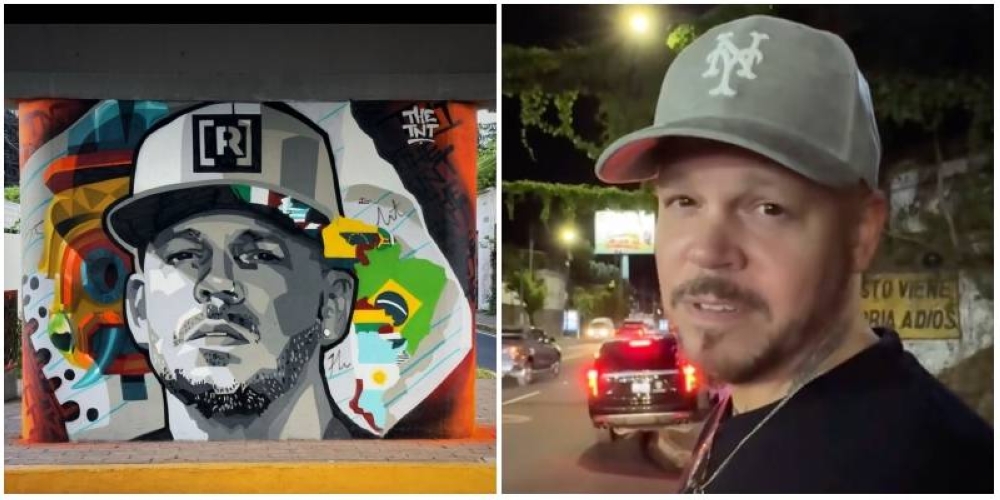 "Estamos aquí ya El Salvador, estamos 'ready' pa'mañana, ¡puñeta!", exclamó el rapero boricua en una historia que colgó en su red social de Instagram y Faceboom, mientras observaba el mural desde la orilla de la carretera.