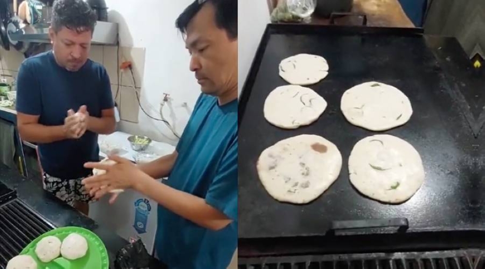 Un tiktoker salvadoreño identificado como Anthony Ochoa Pérez compartió cómo le dio una clase magistral de pupusería a un turista chino. En el video, ambos caballeros muestran su afán en lograr palmear y echar las deliciosas pupusas, al ritmo de "Mi país" de los Hermanos Flores.