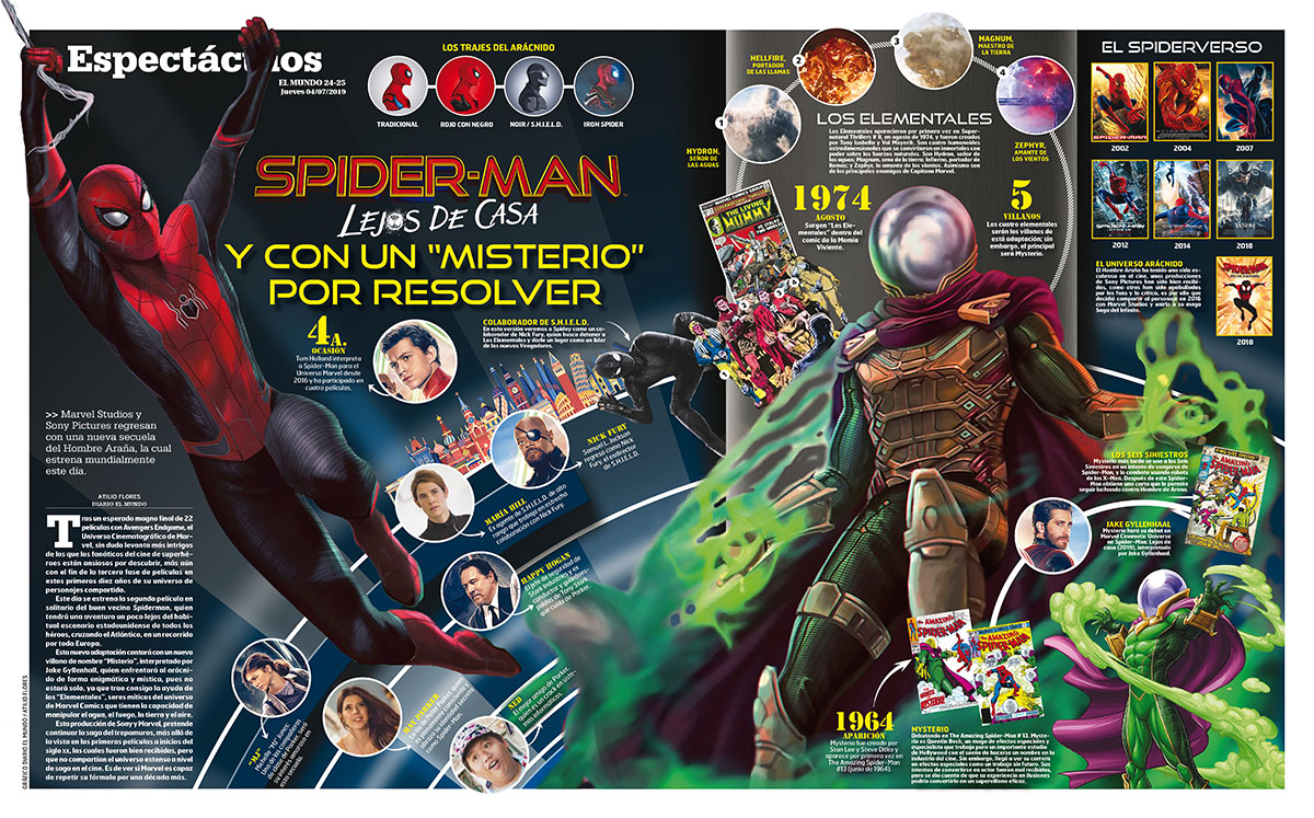 Esta nueva adaptación contará con un nuevo villano de nombre “Misterio”, interpretado por Jake Gyllenhall, quien enfrentará al arácnido de forma enigmática y mística, pues no estará solo, ya que trae consigo la ayuda de los “Elementales”, seres míticos del universo de Marvel Comics que tienen la capacidad de manipular el agua, el fuego, la tierra y el aire.