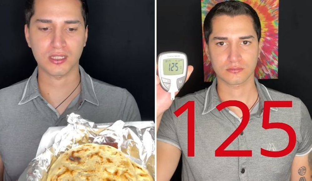 Así fue como el joven y esbelto creador de contenidos decidió degustar el platillo tradicional de los salvadoreños: las pupusas. Antes de consumir dos pupusas grandes aparentemente de maíz, sin curtido ni salsa, el tiktoker midió su nivel de glucosa y este fue de 85 miligramos de azúcar por decilitro (mg/dL), siendo lo normal hasta un máximo de 100 mg/dL, ya que después de ese nivel puede encender alertas de una prediabetes.