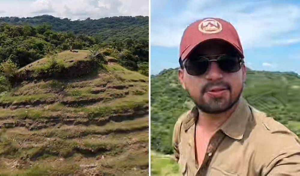 "¿Será esta una pirámide escondida en El Salvador de una civilización antigua?", arroja el creador de contenido. "¿Ustedes que opinan?, ¿es una pirámide o un simple cerro? Está bastante curioso la verdad", enfatiza.