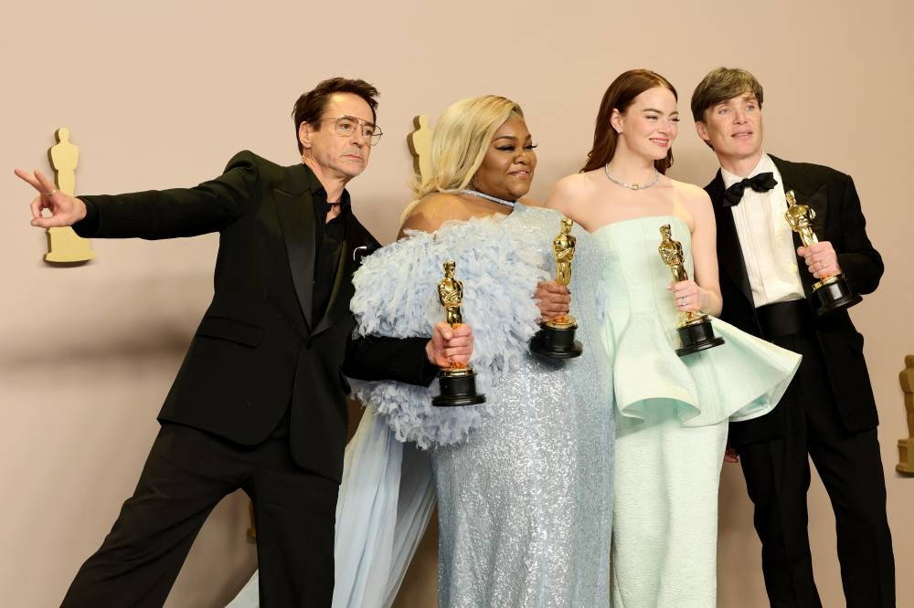 "Oppenheimer", el drama de Christopher Nolan sobre las tribulaciones del padre de la bomba atómica, dominó la ceremonia llevándose siete estatuillas. Le siguió la surreal cinta de Yorgos Lanthimos, "Pobres criaturas", con cuatro premios.