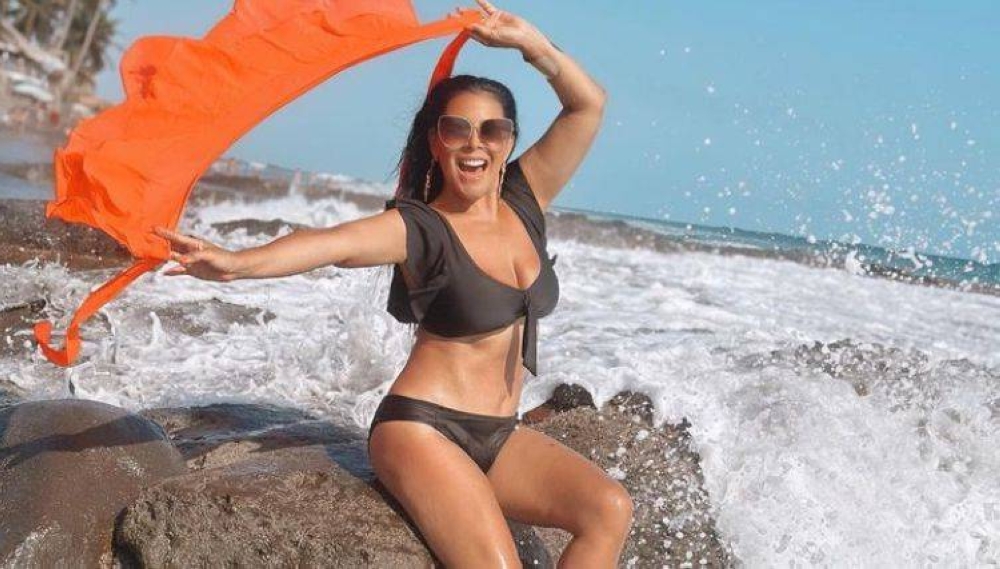 La también influencer de 51 años se dejó bañar por las olas para lograr unas buenas instantáneas, pero su esposo Juan Carlos estuvo muy cerca para cuidar sus movimientos, así como su familia, con quienes gozó estos días de descanso bajo el sol.