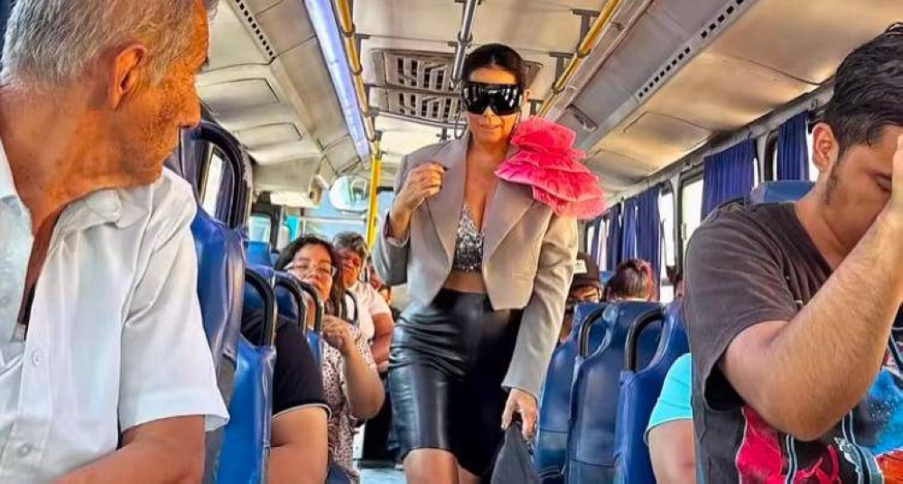 La expresentadora de programas como "Domingo para Todos", "Grandiosas" o "De mujer a mujer" desafió cualquier estereotipo sobre la edad o los espacios alternativos para hacerse una trepidante sesión de fotos (o videos) que, desde luego, también llamó la atención de los pasajeros del bus, o bien del presentador Mario Meléndez que coincidió con ella por esos rumbos.