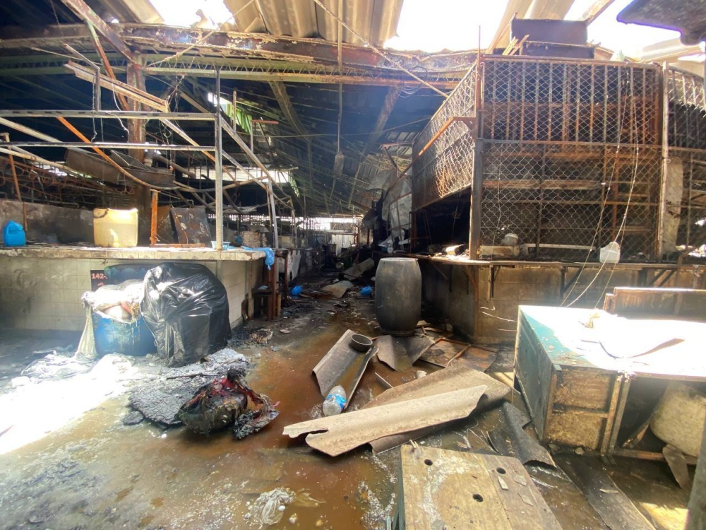 Los puestos del edificio cuatro y seis, contiguos al edificio afectado, también se quemaron. Así se ven. Las autoridades hacen trabajos de remoción luego del incendio del 2 de la madrugada del 2 de agosto. / Lisbeth Ayala.