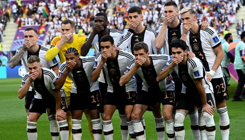 Al partido ante Japón en el estadio Khalifa de Doha asistía el presidente de la FIFA, Gianni Infantino. Frente a él y al resto de asistentes, los jugadores alemanes hicieron ese gesto tapándose la boca como forma de denunciar lo ocurrido.