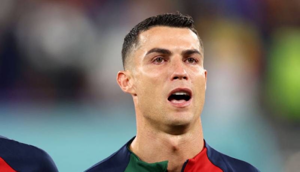 Cristiano Ronaldo no pudo contener las lágrimas al cantar el himno de Portugal previo al inicio del duelo ante la selección africana de Ghana en el estadio 974 por la primera jornada del grupo H del mundial de Catar.