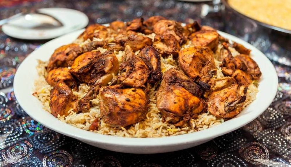 El platillo machboos consta de arroz con especias y algún tipo de carne principalmente pollo, otras veces cordero, aunque de igual forma, puede ir acompañado con algún corte de pescado o con carne de camello.