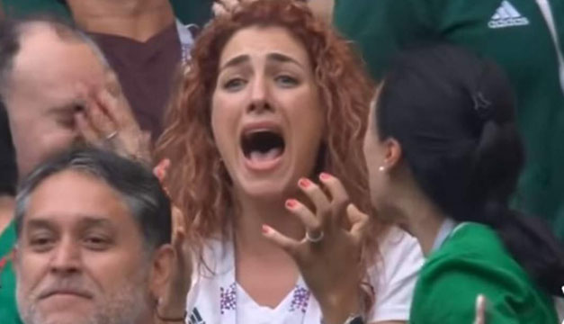 La mujer, quien ha sido identificada como Karen Harfusch, originaria de la Ciudad de México, ha cobrado fama luego de ser captada por las cámaras de televisión diciendo "no mames", mientras celebraba la anotación.