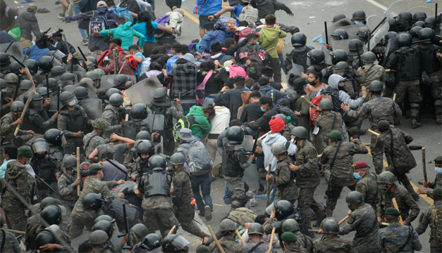 Policía de Guatemala hace retroceder a caravana migrante con gas lacrimógeno