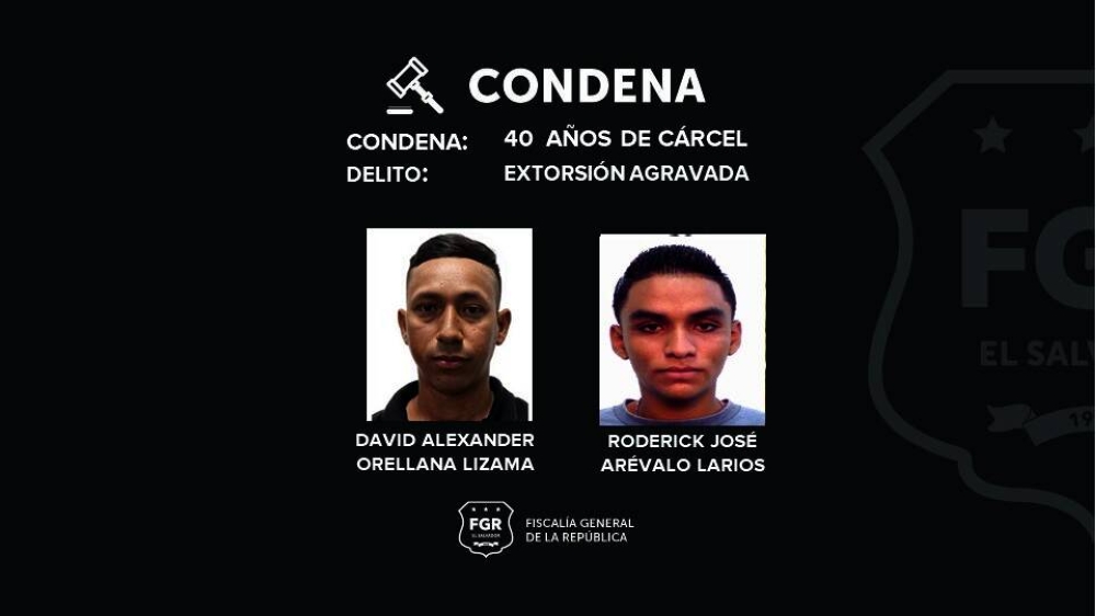El Tribunal Primero de Sentencia de San Miguel condenó a 40 años de cárcel a dos pandilleros de la Mara Salvatrucha (MS13) por extorsionar cada uno a una víctima en San Miguel.