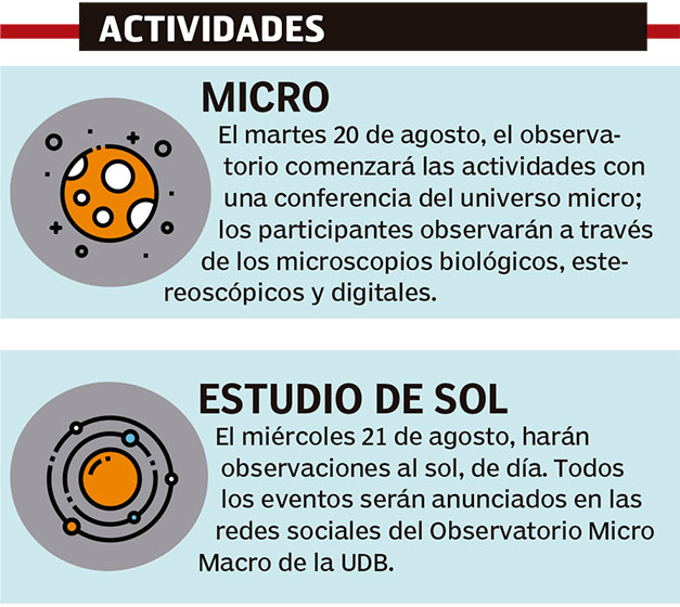 El observatorio tiene dos salas micro, un planetario donde hay un proyector que simulará el cielo nocturno, el sistema solar y las galaxias.