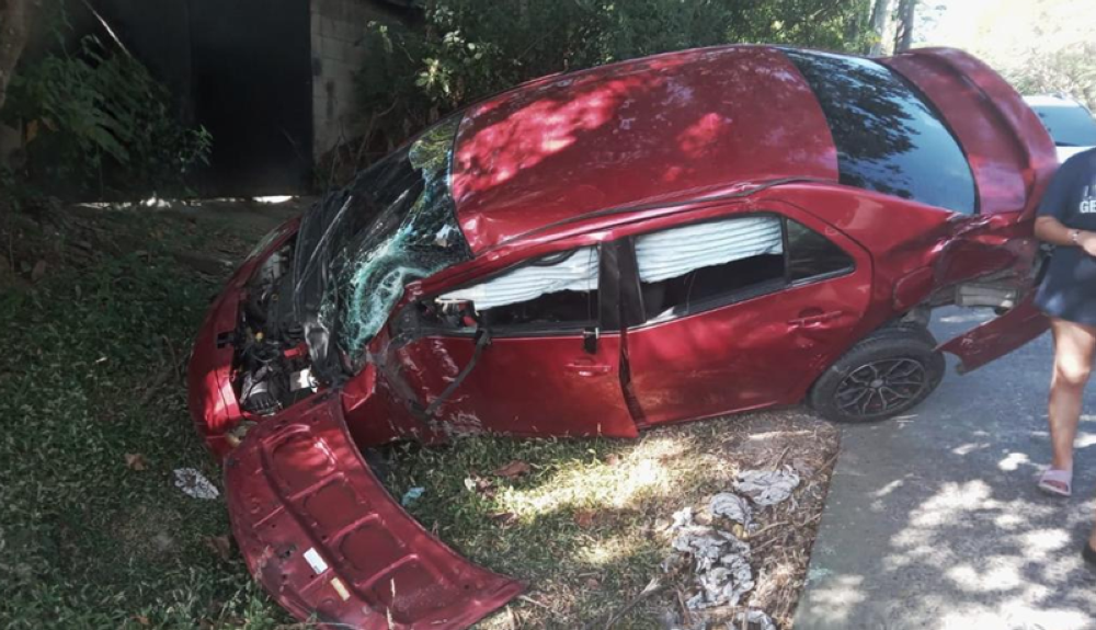En horas de la tarde de este miércoles la Policía Nacional Civil (PNC) reportó un aparatoso accidente de tránsito, en el cual un vehículo tipo sedán quedó destruido luego de haber sido sacado por otro automotor en el kilómetro 23 de la autopista a Comalapa, cerca del cantón La Esperanza, Olocuilta, en el departamento de La Paz.