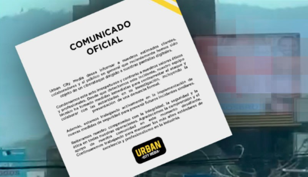 La agencia Urban City Media denunció la tarde de este viernes a través de un comunicado un ciberataque contra pantallas digitales en donde el contenido fue vulnerado por imágenes pornográficas.