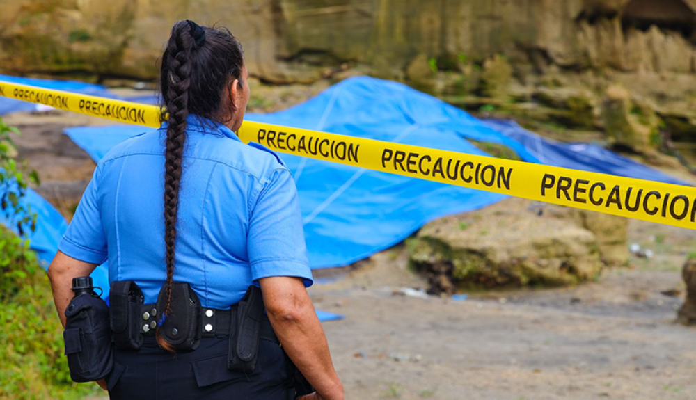 Agentes del CAM y de la PNC custodian vestigios arquológicos de la quebrada El Pacún.MC