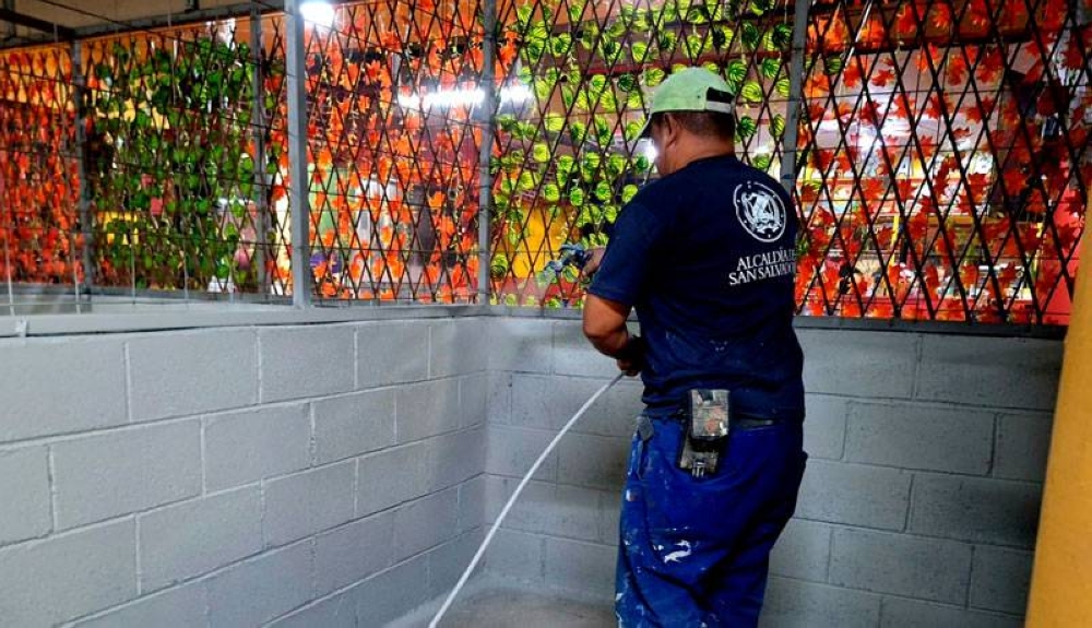 Con andamios y rodillos se ve a trabajadores de la comuna pintando el espacio, así como a otros encementando zonas dañadas.