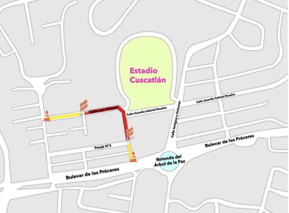 Además, el cierre de la calle El Estadio entre el Centro Comercial Autopista Sur y pasaje #3.