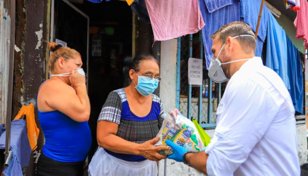 Hasta esa comunidad llegó este lunes el alcalde Ernesto Muyshondt a repartir paquetes con alimentos, con el fin de ayudar a las familias afectadas por la pandemia del coronavirus.