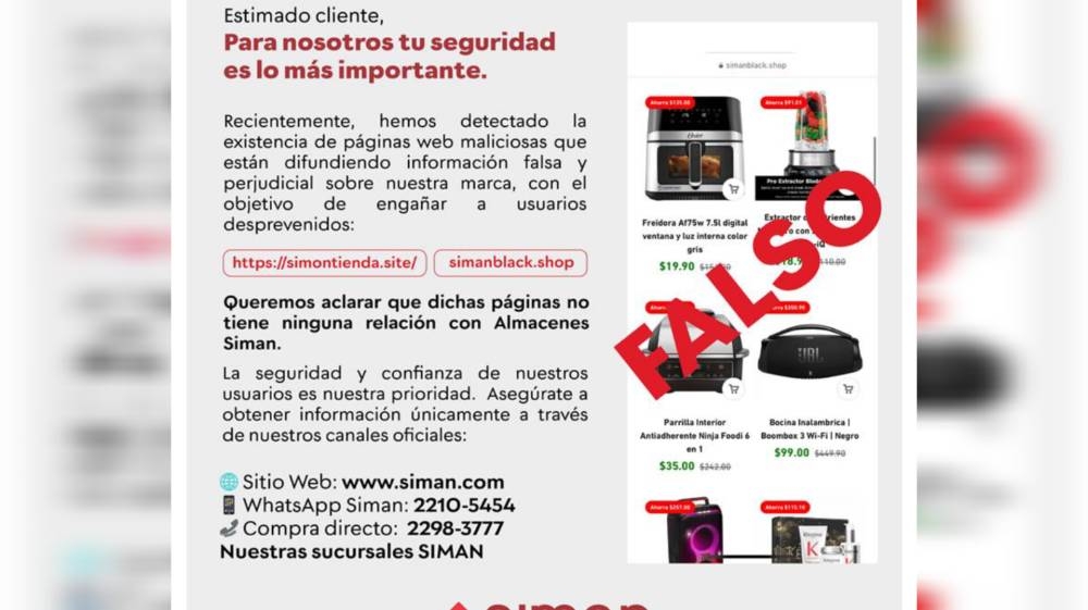 “Queremos aclarar que dichas páginas no tienen ninguna relación con Almacenes Siman. La seguridad y confianza de nuestros usuarios es nuestra prioridad”, aseguró la empresa.