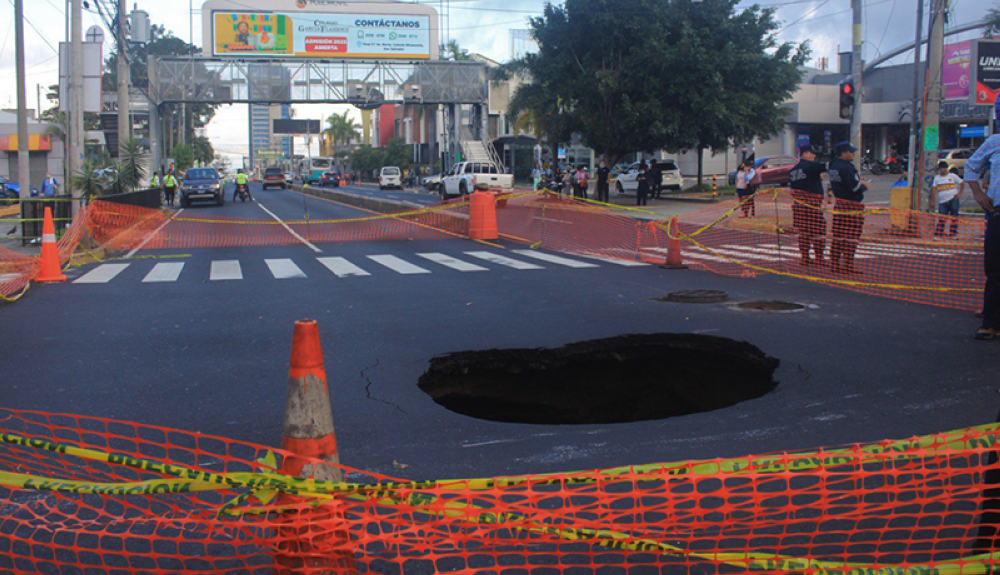 El presidente de la Administración Nacional de Acueductos y Alcantarillados (ANDA), Rubén Alemán, junto a técnicos de la autónoma verificaron el hundimiento, y establecieron el cierre de la calle para evitar que algún automovilista vaya a caer en el socavón.