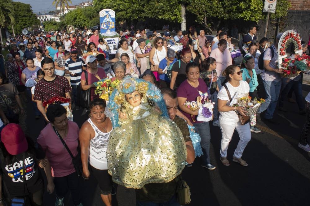 Guadalupe Mancía y sus dos hijas llegaron con vestidos tradicionales desde Santa Tecla, y enfatizaron que es una tradición generacional a la que asisten desde hace años, por devoción transmitida desde sus abuelos.