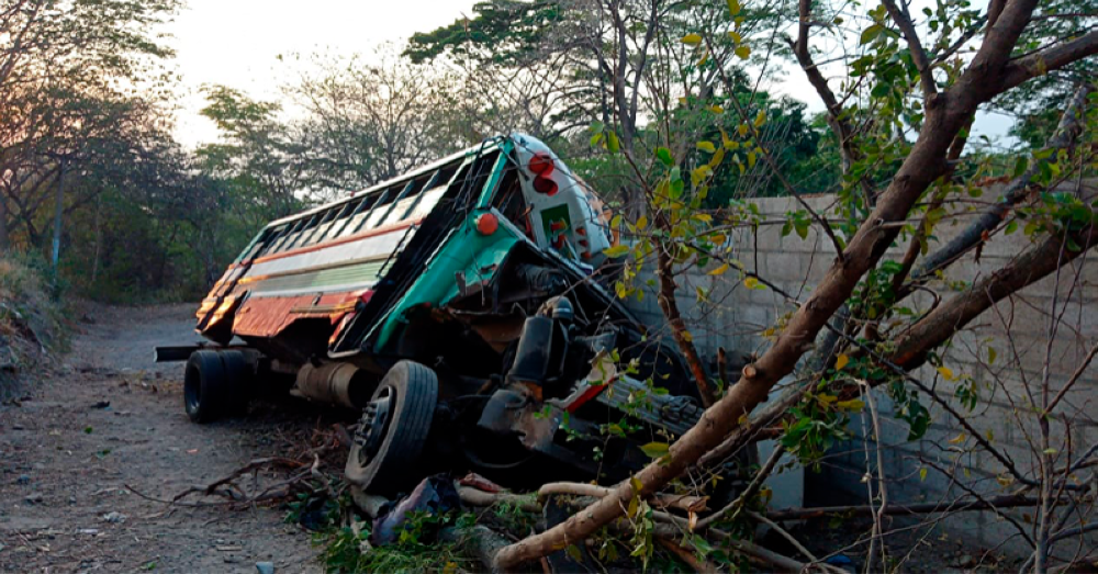 El bus, que hace su recorrido desde Zacatecoluca hasta San Luis La Herradura, del departamento de La Paz, habría impactado con un muro en construcción ubicado a un costado de la carretera, según muestran las fotografías publicadas por los bomberos.